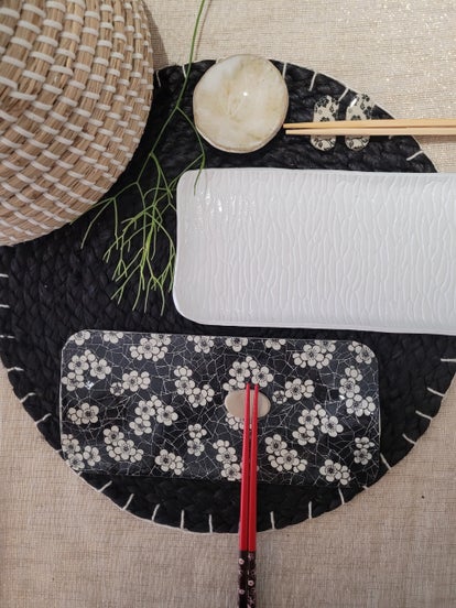 Sushi serveren op je eigen borden of plankjes met bijpassende kommetjes voor sojasaus en 2 houders voor je stokjes ... hoe tof is dat! Ik toon je verschillende mogelijkheden en dan kan je aan de slag. Je ontwerpt zelf de vorm en kiest voor de decoratie die bij je smaak en stijl past: twee rechthoekige planken of borden, eenvoudig, met structuren of texturen ... een strak kommetje of eentje gevormd met je handen ... kies wat jij mooi vindt! En tenslotte 2 houders voor je stokjes.